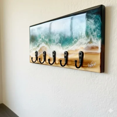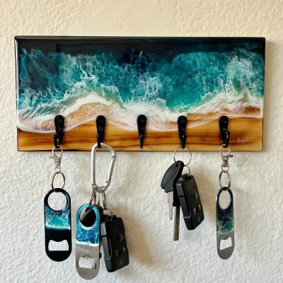 Handcrafted Ocean Wave Resin Art Key Holder with Bottle Openers